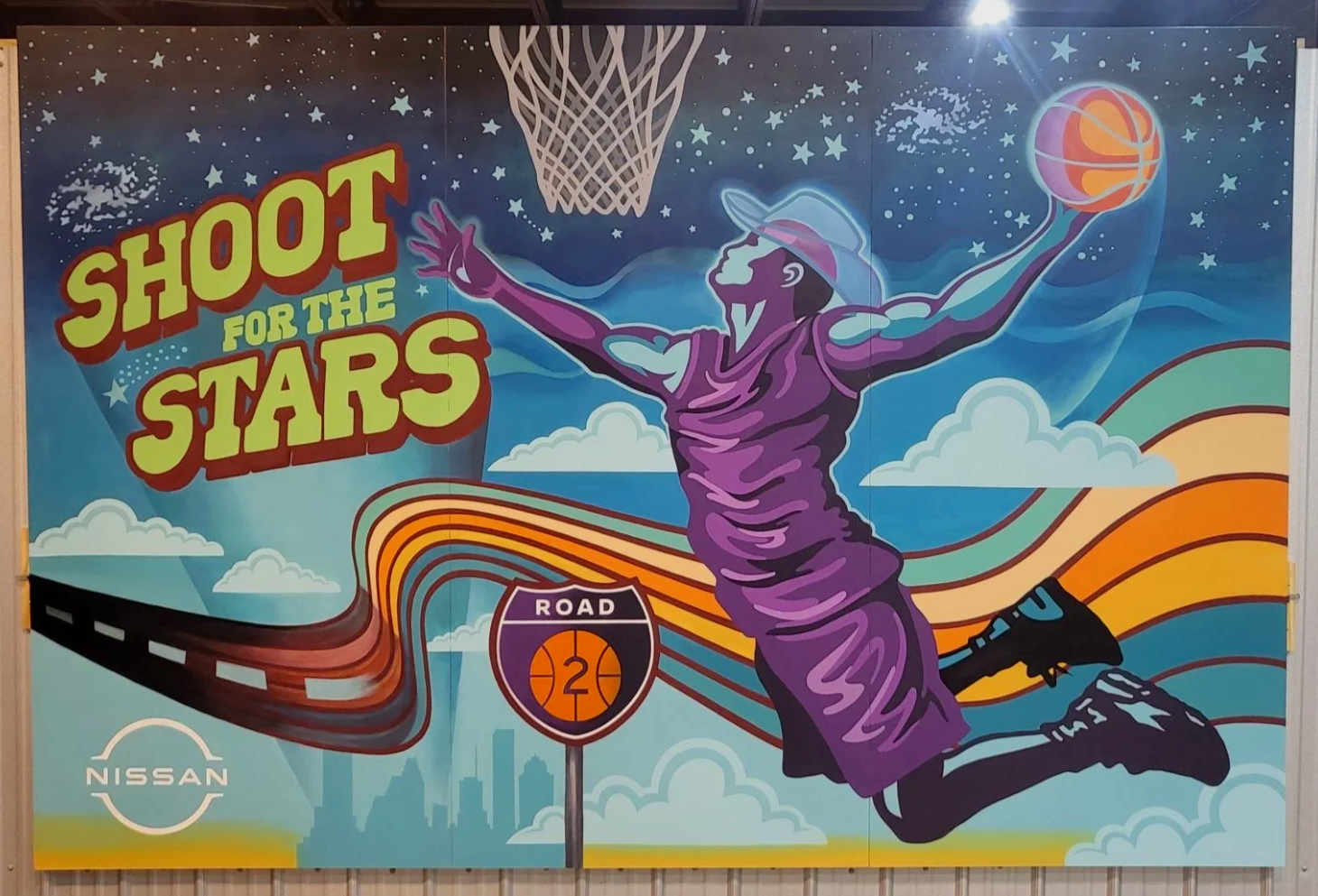 Assisted with the lettering and line work of two murals for the 2023 Nissan Final Four event with Lead Muralist Robert Tatum.
